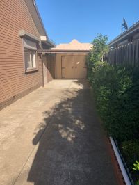 - Covered carport area leading into a further garage space.