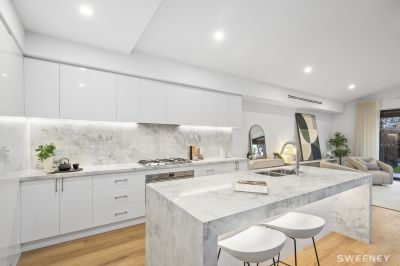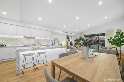 The home offers three spacious bedrooms, two exquisite bathrooms, and two expansive living areas, including one with a soaring raked ceiling. Every detail has been thoughtfully designed to strike the perfect balance between luxury and versatility. Designed for modern living and effortless entertaining, the property also boasts a stunning alfresco space and beautifully landscaped gardens that create a true sanctuary in the heart of Melbourne's inner west.